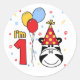 First birthday fun "I'm 1" with cool zebra face, large number 1 and colourful balloons. If you love jungle, safari and zoo animals you'll love this zebra in a birthday hat.