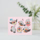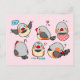 Zebra finch cute cartoon pink chequered pattern postcard