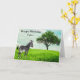 This card features an zebra grazing on green grass, with shade tree and blue sky. Personalise this card with your own greeting. It would make a thoughtful card for boy.