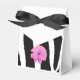 A modern classic black and white zebra pattern with a pretty flower accents these favor boxes.