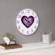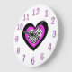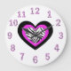 This cute clock has a zebra heart in pink, black and white. Plus it has zebra print numbers with pink trim.