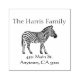 Zebra full side view illustration graphic splits customisable text. Top text box can be used for family or business name and bottom box for address or other contact details