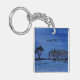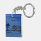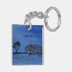 A watercolor painting of zebras at an evening watering hole adorns this customisable keychain!