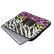 This wild and fun leopard print computer case sleeve art is new and contemporary. Featuring stylised, hand watercolored zebra and leopard print art which was hand painted. The top print is a white and black Zebra stripe, with lime green and black narrower ribbon and a bottom pattern of hot pink leopard print. Your name goes in the black tag in the centre of the design. There are several colours of leopard print and zebra print available. Your name or names personalise the case. There are also I-Phone and I-Pad cases to match. If we don't have the case you're looking for just email us and we'll make it for you.