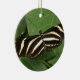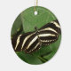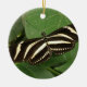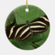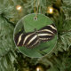 This pretty pendant style ornament features a photograph of a beautiful tropical butterfly. This species is called a Zebra Longwing Butterfly (Heliconius charithonia) and is covered in vivid black and white stripes across each wing. It comes from America. The photograph was taken using macro photography for a stunningly detailed result.