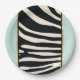 Zebra mint green, black and cream print paper plate