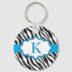 Zebra Monogram Blue Ribbon Keychain