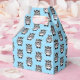 Party favour box shown in light blue in a gable style with a cute cartoon zebra.