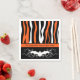 A zebra stripes pattern in Halloween colours of black, orange, and white with a frilly white vampire bat and space for your text on paper napkins. Personalise with your own text.