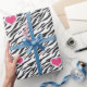 Zebra Pattern and Pink Hearts Wrapping Paper