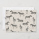 This flat notecard set features a clean white card with a personalised name in spaced capital letters at the top, paired with an allover illustrated pattern of full-body zebras in various poses on a warm sandy background on the back. The black and white stripes against the neutral ground make it feel graphic and sophisticated. A great pick for a zebra lover, a safari fan, or anyone who wants their correspondence to stand out.