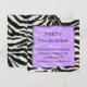 Nice zebra skin design party invitation, a zebra border combined with a purple background. a verry stylish and unique party invitation suitable for all kind of party's.