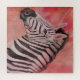Portrait of Zebra head on red colour wash background.