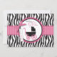 Boutique style zebra and dot print with hot pink accents and a baby carriage.