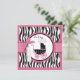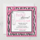 Wild and sweet zebra print with hot pink accents and polka dot baby stroller with 3D tag, bow, and trims baby girl baby shower invitation card.