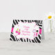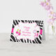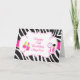 A cute Pamper Birthday Party Birthday card to thank your guests for attending the special occasion featuring a zebra print background with a pink band through the middle and an ornate frame in the centre. The text can be changed to suit your own requirements.