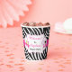 Keep your guests happy with these amazing Paper Cups featuring a zebra print background with a pink band through the middle and an ornate frame in the centre. The text can be changed to suit your own requirements and other matching items are also available to create a themed party.