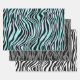 3 Different Zebra Prints, Black and Teal Turquoise Zebra Print, Grey Silver and Black Zebra Print, and Black and White Zebra print wrapping paper sheets. Also great as drawer liners.