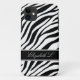 Stylish custom iPhone 5 case personalised with your name, and designed with a zebra print pattern with black & white zebra stripes.