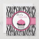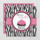 Boutique style zebra print with hot pink accents and a sweet cupcake baby shower invitation card.
