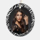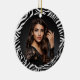 This ceramic ornament is shown in a zebra animal print in a round shape with a sample photo.