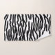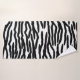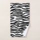 Bath towel set with a black and white zebra stripe design. This bathroom towel set can be customised with any text of your choice. Should you require any help with customising then contact us through the link on this page. Zebra print design bathroom towel set