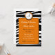 Very orange adorned with zebra print and a monogram emblem. #chic #birthday #invitations