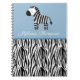 Black and white zebra pattern covers the lower half of this cute notebook. The top half is a pastel blue with a cute, kawaii zebra standing over a template to add your name to personalise for the perfect gift.