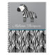 Black and white zebra pattern covers the lower half of this cute notebook. The top half is a pastel grey with a cute, kawaii zebra standing over a template to add your name to personalise for the perfect gift.