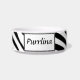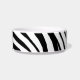 Custom ceramic cat bowl with a black & white zebra print pattern, personalised with your pet's name.