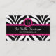 Zebra Print & Pink Lace Monogram Business Card