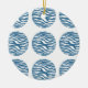 Cute and trendy Zebra Print Polka Dots Ornament. This design features fun zebra print pattern circles in blue and white. Text can be added to this design to give it a personal touch.