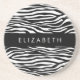 Zebra Print, Stripes, Black And White, Your Name Coaster