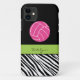 Fun zebra print volleyball iPhone 5 case features black and white zebra stripes at the bottom of the iPhone and a volleyball at the top half of the iPhone on a black background and a accent muted green ribbon stitch appearance border frame for you name, initial or other text. Show your personality with this trendy and fun iPhone 5 case. Makes a great gift for all occasions. Click the "Customise it!" button to change the background colour, text colour, text size, font style and more!