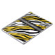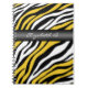 A black, white, and coloured zebra print mixed pattern with a black & dark grey horizontal gradient stripe personalised with your name on a custom spiral-bound notebook.