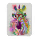 This watercolor print features a colourful portrait of a zebra in orange glasses adorned in flowers | By Fab Funky