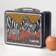 This is a standard metal lunchbox that appears to work just fine. We designed this box ourselves with an uploaded photo and custom text on the front and back. It looks absolutely beautiful except the front of the lunchbox is not centered like it shows in the photo. The print borders don't align with the inset flat part of the box where the preview photo online showed it perfectly centered in there. The back looks nice and centered though.