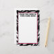 Stationery featuring a zebra print border with pink trim. Text may be personalised. line 1 reads "from the desk of" Line 2 reads "Your name here" Insert your own name. If you wish to change the font size, colour, or style, you may edit with the design tool.
