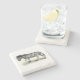 The coasters are gorgeous, a quality feel and heavy weight. They look like a precious archeological find. A rustic stone juxtaposed with a modern floral black and white print. I like the way the print goes slightly imperfect on the cut stone edges giving them a kind-of natural beauty.