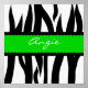 Zebra Striped Pattern Personalised Name Poster - Neon, Lime Green, Black and White
