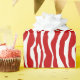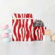 An updated take on a classic animal print - zebra stripes in deep lipstick red on a white background