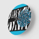 Zebra Stripes with Blue Chrysanthemum Round Clock