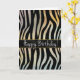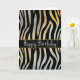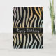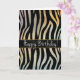 Graphic Zebra Stripes overlaid on a warm earth-tone background with a subtly shimmery texture. The front of the card features a "Happy Birthday" in white script on a black ribbon. Inside the card is a short birthday greeting, which can be replaced with a special message from the sender.