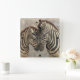 10.75” x 10.75” acrylic wall clock with an image of a painting of a zebra and her colt. Black orbs mark the 12, 3, 6, and 9 positions.
