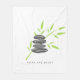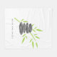 Zen fleece blanket with wellness pebble stones. Zen design with green bamboo leaves and grey rocks.