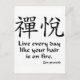 Kanji for Zen joy with the Zen Buddhist proverb, "Live everyday like your hair is on fire".