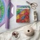 Red, yellow, green, purple, pink hand painted watercolors, pencils flower pattern.