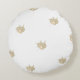 This round pillow features beige flowers and orange centre, on the calm white surface.