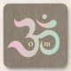 Zen Om pink green brown rustic burlap coasters
