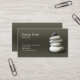 Professional business card template with stack of black and white zen stones in perfect balance, symbolising harmony, peace and equilibrium.